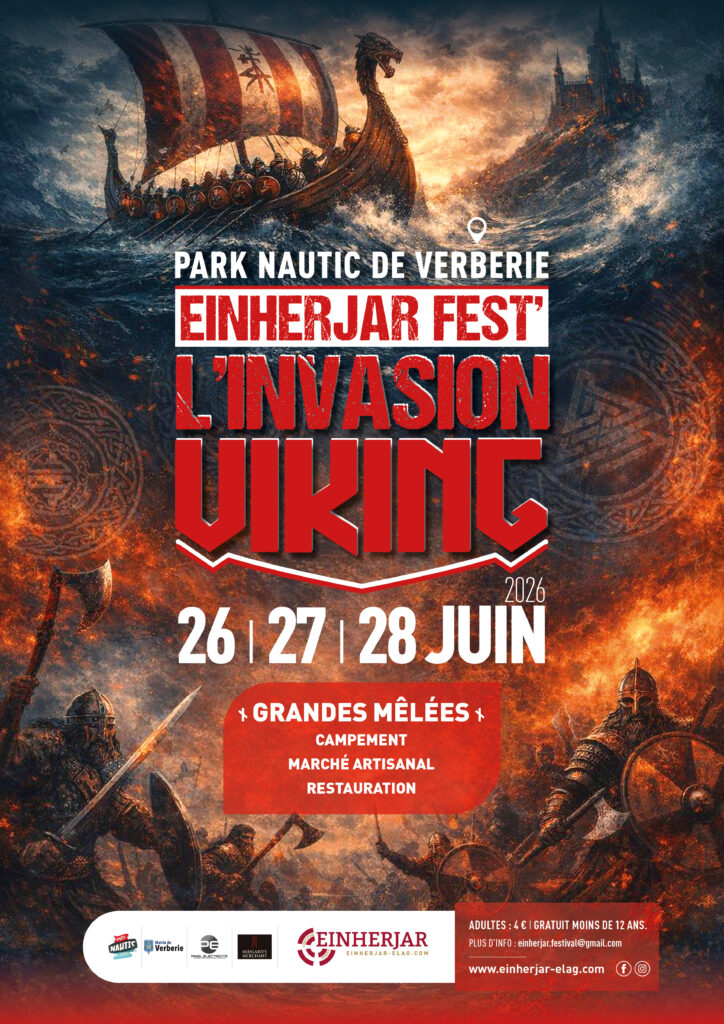Nous sommes fiers de vous annoncer le retour du Einherjar Fest pour une deuxième édition encore plus ambitieuse, les 26, 27 et 28 juin 2026, au Park Nautic de Verberie, près de Compiègne.